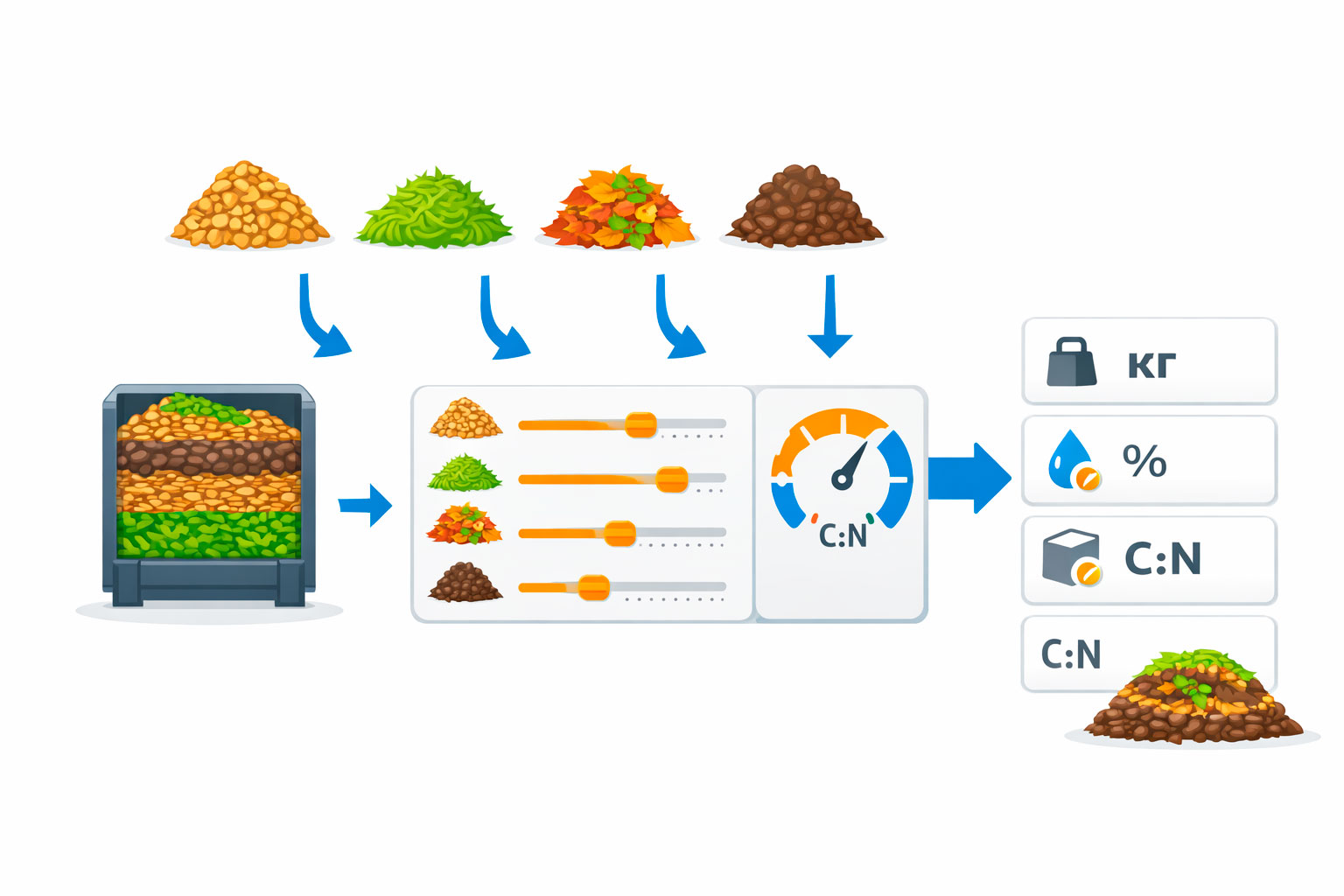 Калькулятор компостной смеси со щепой (C:N) | Расчет C:N и влажности