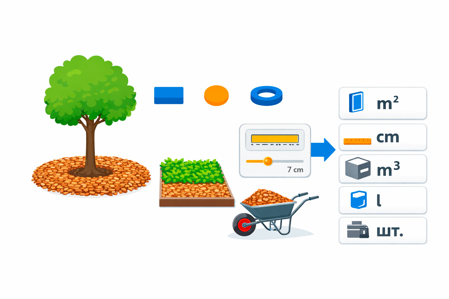 Калькулятор щепы для мульчи онлайн | Объем в м³, мешках и тачках